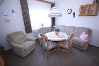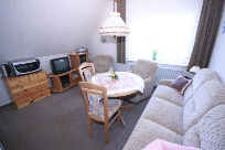 Unsere Nichtraucher Ferienwohnung befindet sich im Obergeschoß unseres Hauses und hat eine Größe von ca. 48 qm. Sie besitzt eine Wohnküche mit Eßtisch, Couch und Küchenzeile, ein Elternschlafzimmer mit Doppelbett, ein zweites Schlafzimmer mit einem Etagenbett, sowie ein Bad mit Dusche und WC. Auf Wunsch kann ein Kinderbett und Hochstuhl kostenlos gestellt werden. Balkon mit Sitzmöbel und Strandkorb. Weiter stehen Gartenmöbel und Grill im Garten zur Verfügung. Parkplatz sowie Unterstellmöglichkeiten für Fahrräder direkt am Haus.